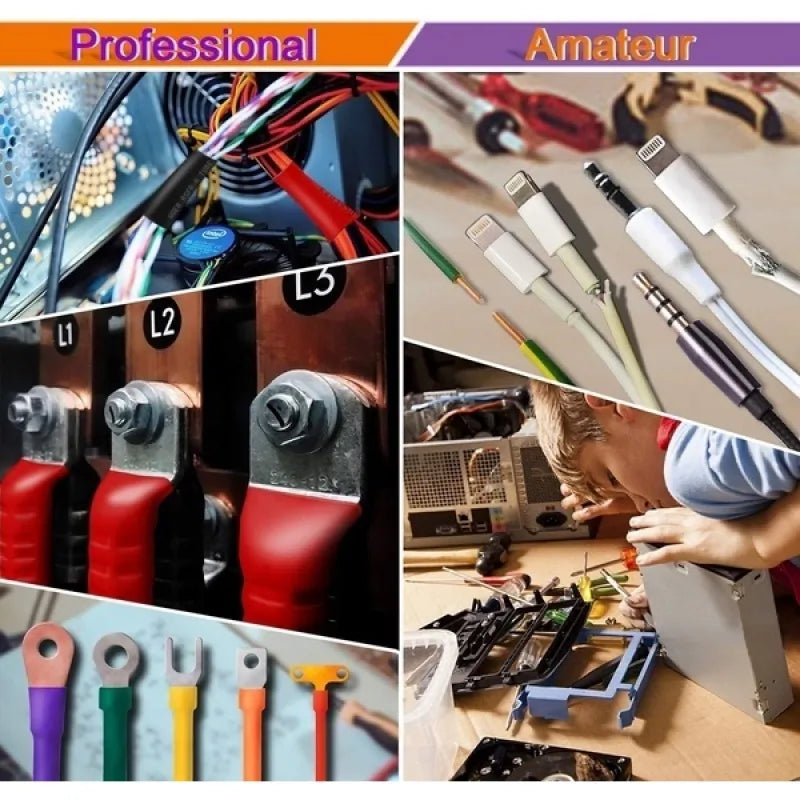 هذه المجموعة تحتوي على 530 قطعة من أنابيب التقلص الحراري، توفر عزلاً محكماً للأسلاك وتحميها من التلف والرطوبة، مما يجعلها مثالية للإصلاحات الكهربائية والالكتروني